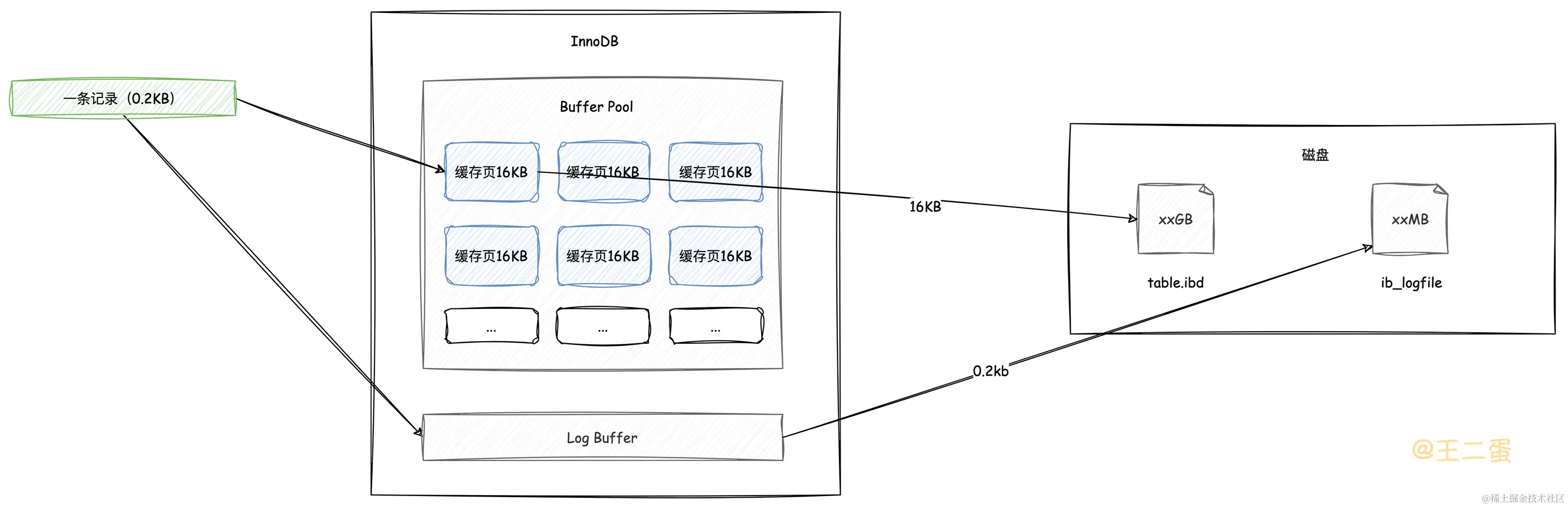 这里说的日志文件就是经常会听到的「Redo Log」,即使MySQL宕机了,通过磁盘的redolog,也可以在MySQL启动时尽可能的将数据恢复到宕机之前样子。当然,还有「Undo Log」,因为对本文重点没有直接影响,所以不对此展开说明。