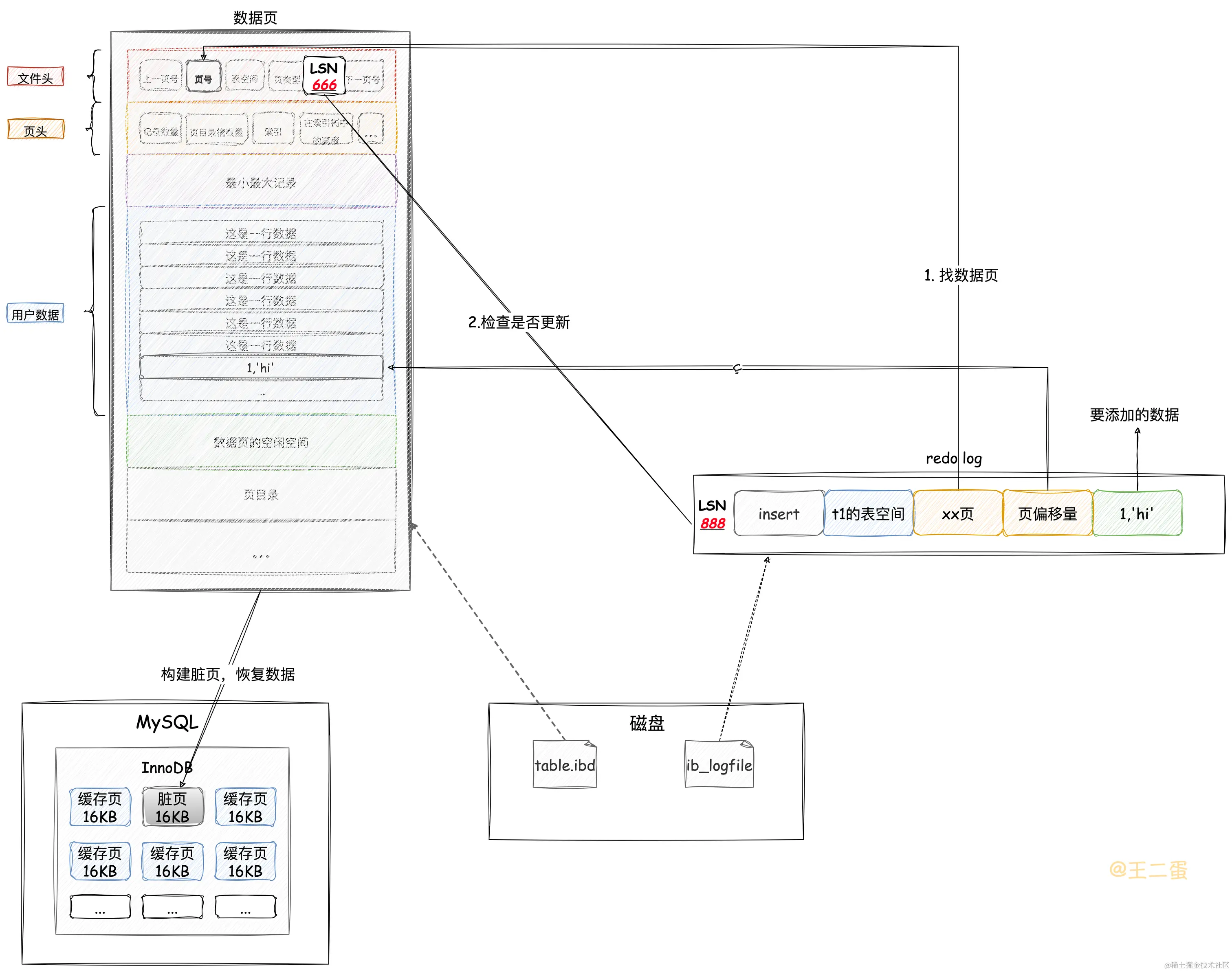注意:这个恢复的过程重点在redo上,实际上还涉及到「Change Buffer」、「Undo Log」等操作,这里没有展开说明。