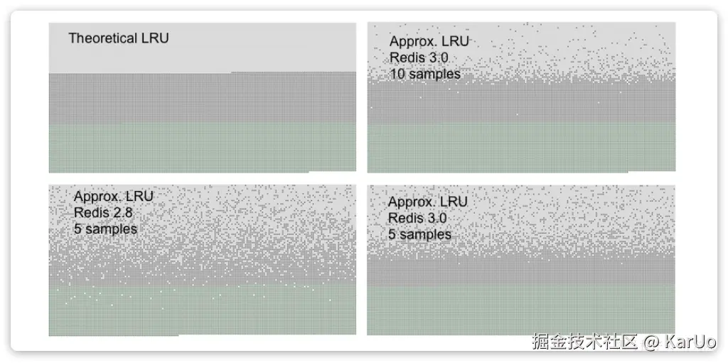 这也是官方给出的真正LRU与近似LRU的结果对比: