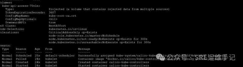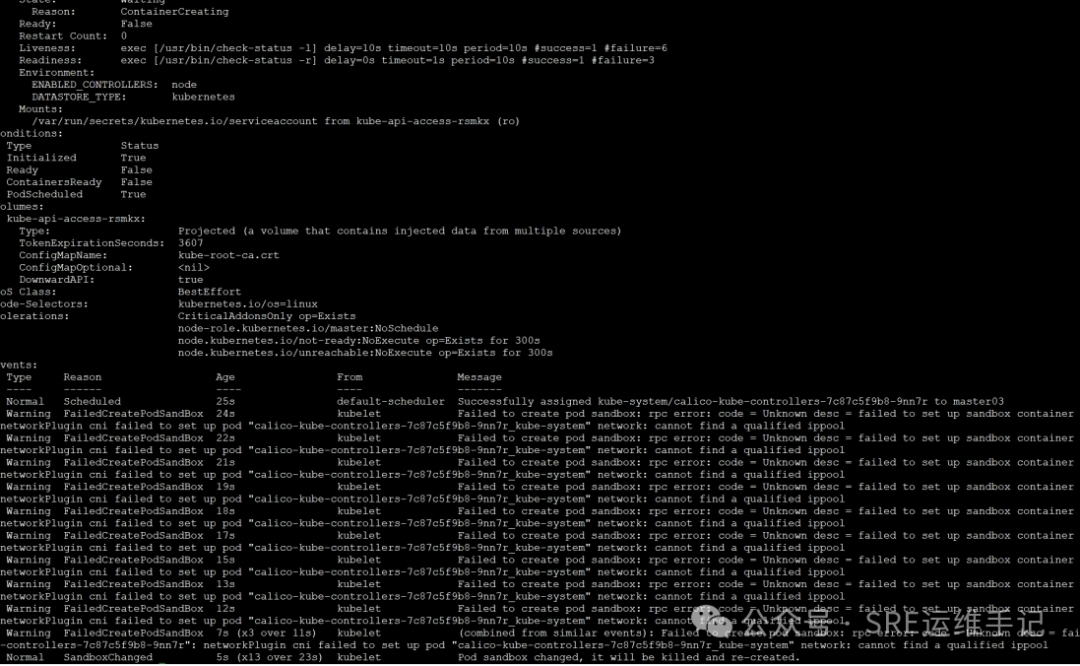 接着,就是重启Calico Controller的Pod,然后可以从Pod事件日志中我们看到Calico Controller已经正常启动了,重新启动的业务Pods也可以正常获取到ip并完成启动,故障解决。