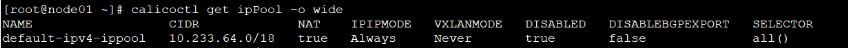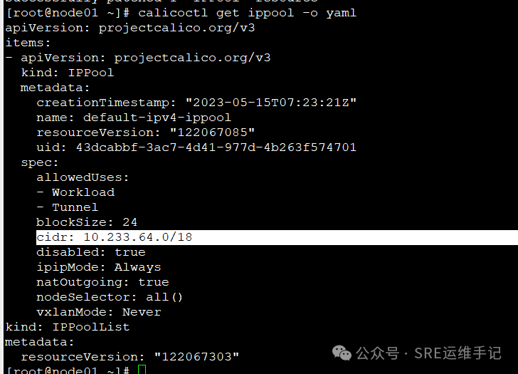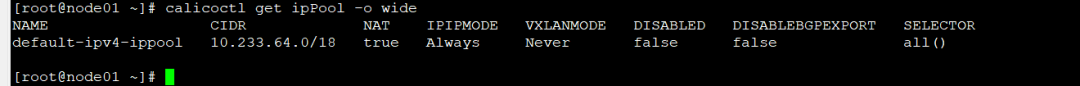 EOF在创建完成后,我们再次执行calicoctl get ippool -o wide观察到ip地址池已经启用了,牛逼!!!