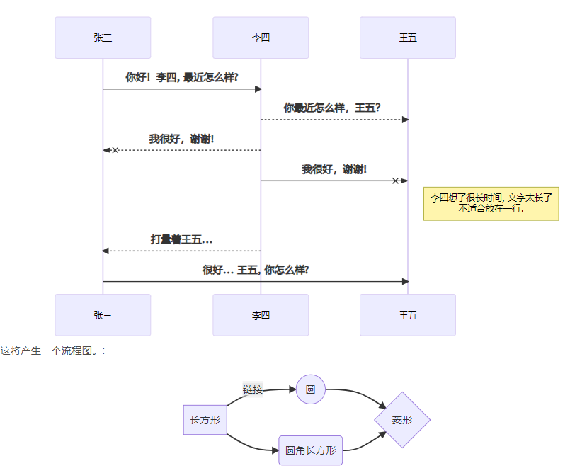 可以使用UML图表进行渲染。Mermaid. 例如下面产生的一个序列图: