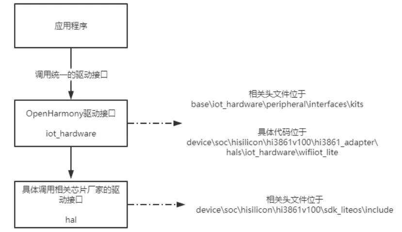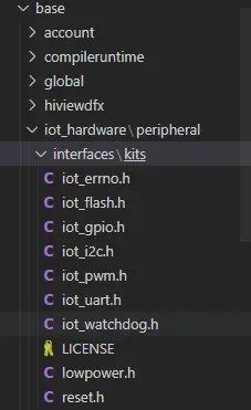 OpenHarmony为轻量系统提供了一套简单的驱动封装接口,函数的定义相关头文件位于“base\iot_hardware\peripheral\interfaces\kits”