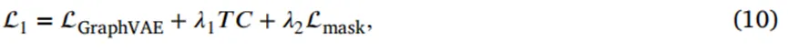 其中𝐴𝑐是重构邻接矩阵,𝑋𝑐是重构节点特征,𝑍是图编码器最后一层的输出。我们的多头GraphVAE的目标是最小化重构误差,并最大限度地压缩潜在变量𝑍。其目标可表述为: