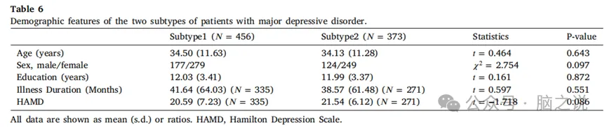 表6显示了REST-meta-MDD上各亚型的人口统计学和临床数据。MDD患者的HAMD总分在不同亚型之间没有显著差异,这表明分化不是基于疾病的严重程度。