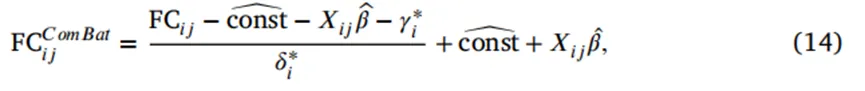 随后,利用经验贝叶斯方法估计了站点效应参数𝛾𝑖和𝛿𝑖。因此,最终的ComBat协调功能连接被定义为: