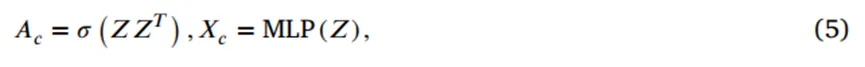 其中𝐴为归一化邻接矩阵,𝐴=𝐴+𝐼,𝐼为单位矩阵,𝐷为节点度的对角矩阵,𝜎为s型激活函数。在我们修改后的GraphVAE的解码器中,我们使用单独的头部:一个多层感知器(MLP)来重建𝑋,和一个线性内积解码器来恢复𝐴。具体来说,我们将重建程序表述为:
