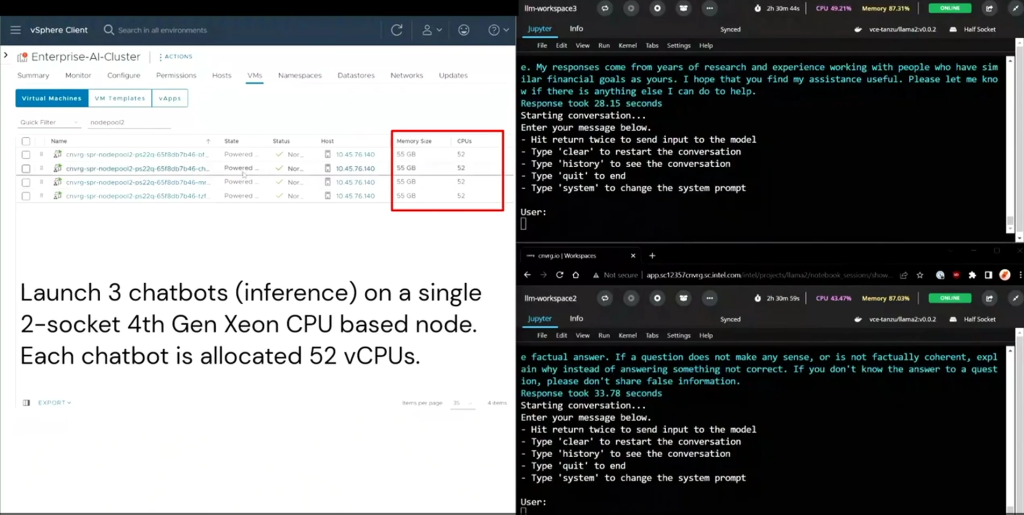 Ruby 还使用该模型在单个第四代至强上运行了三个聊天机器人: