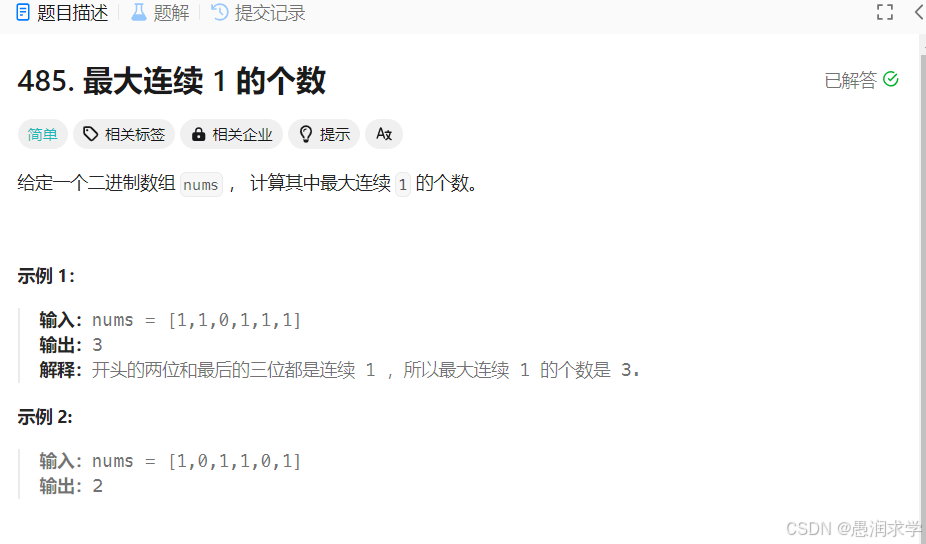 要记录的是连续1,所以要在计数该断的时候断(即遇到不是1的时候)