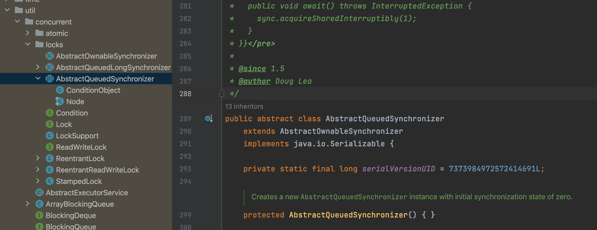AQS全称是:AbstractQueuedSynchronizer,队列同步器。这个类在JUC包java.util.concurrent.locks下面。