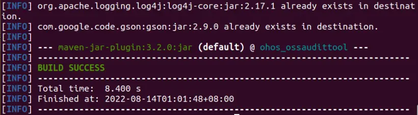 Java –jar ohos_ossaudittool-1.0.jar –s src_dir –r report_file –n selfcheck例如笔者执行的语句为: