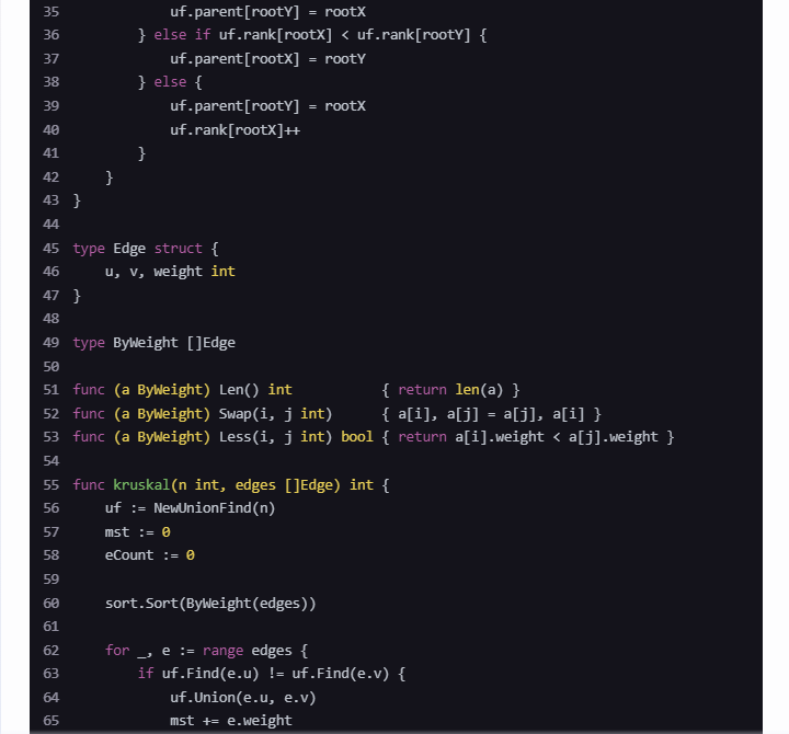 下面是Kruskal算法的Go语言实现,假设边的权重范围是 1 \sim |V|: