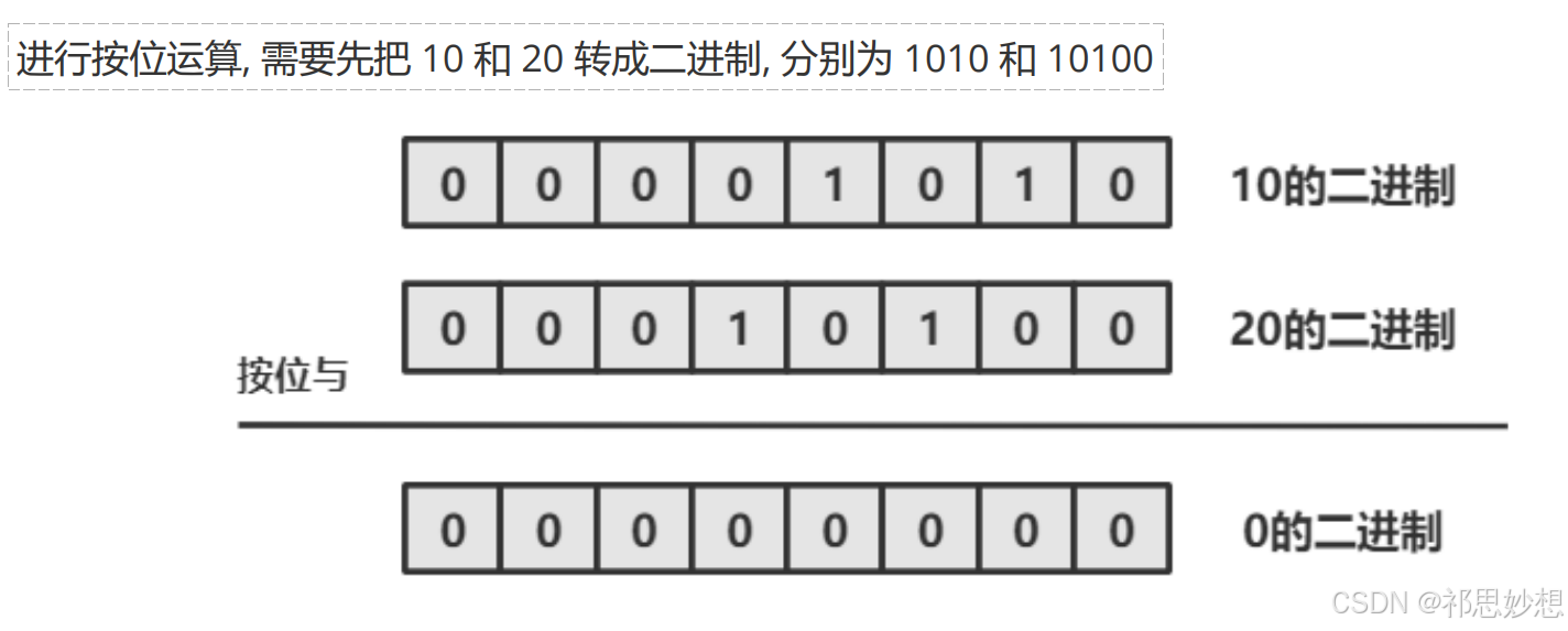 如果两个二进制位都是 1, 则结果为 1, 否则结果为 0.