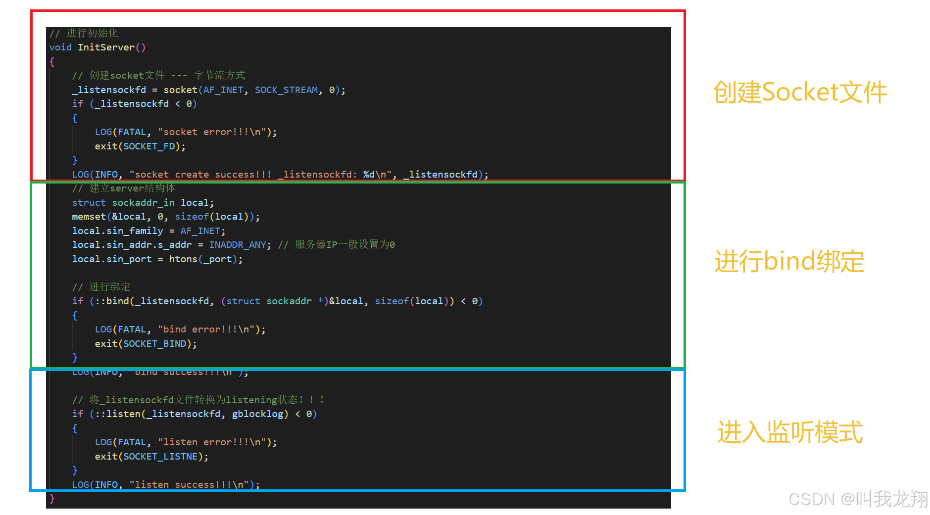 }这样我们的Socket类就编写好了,之后的Tcp服务器就只需要进行调用类内的接口即可,这样Tcp服务器的逻辑更加直观!!!