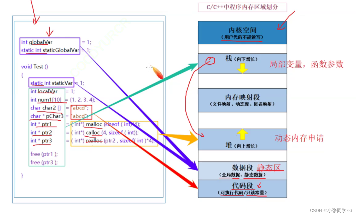 前言 本篇博客就来探讨一下动态内存,说到内存,我们以前开辟空间大小都是固定的,不能调整这个空间大小,于是就有动态内存,可以让我们自己选择开辟多少空间,更加方便,让我们一起来看看动态内存的有关知识吧 个人主页:小张同学zkf 若有问题 评论区见 感兴趣就关注一下吧