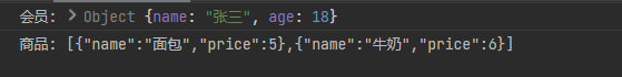 // 商品: [{"name":"面包","price":5},{"name":"牛奶","price":6}]