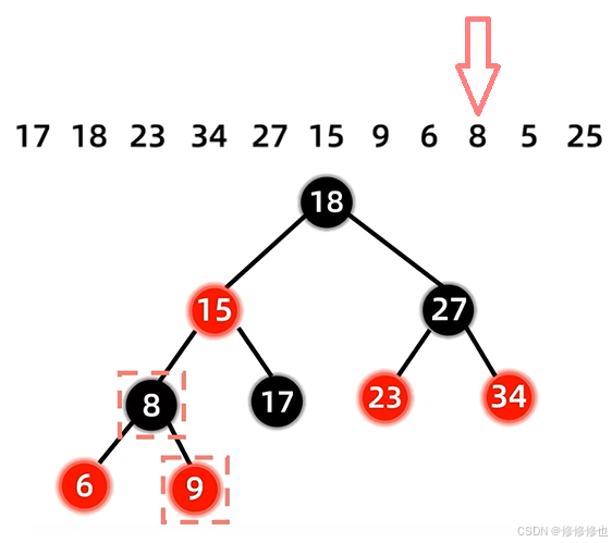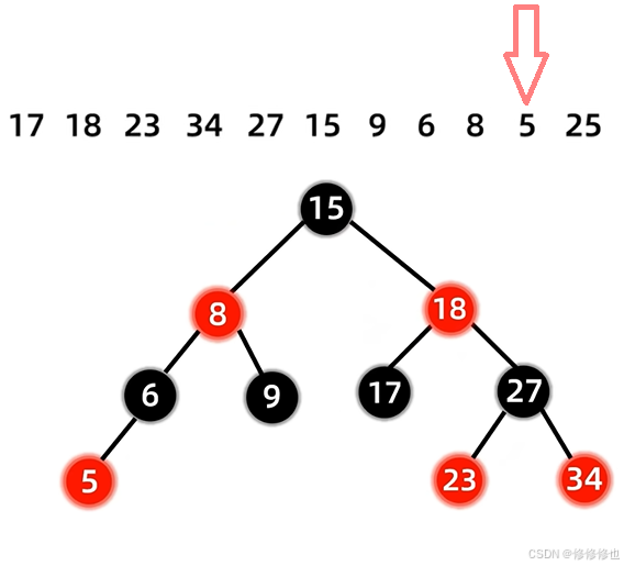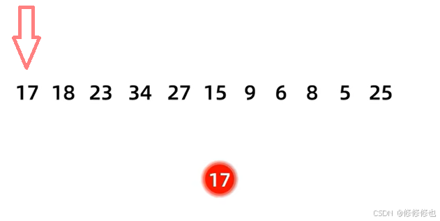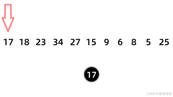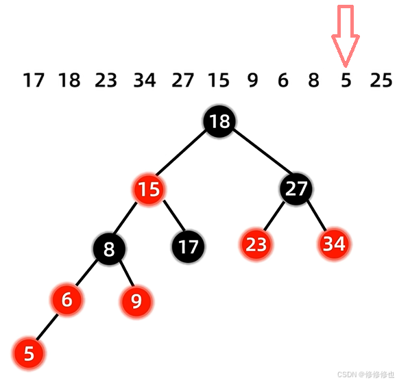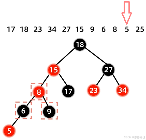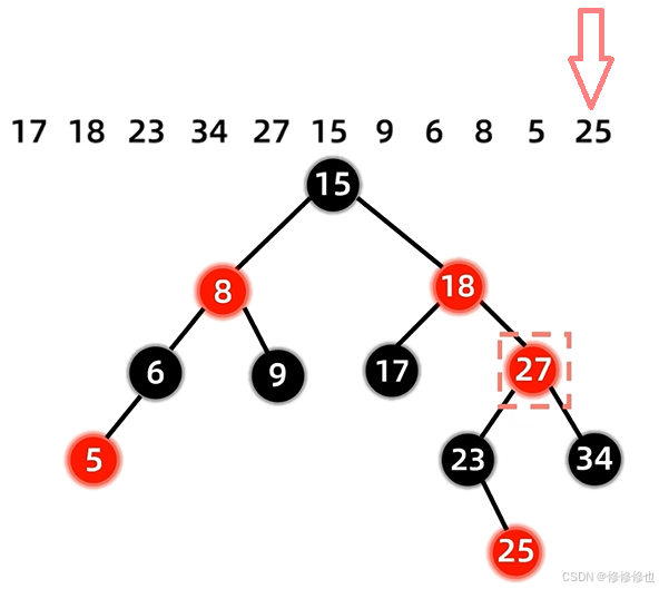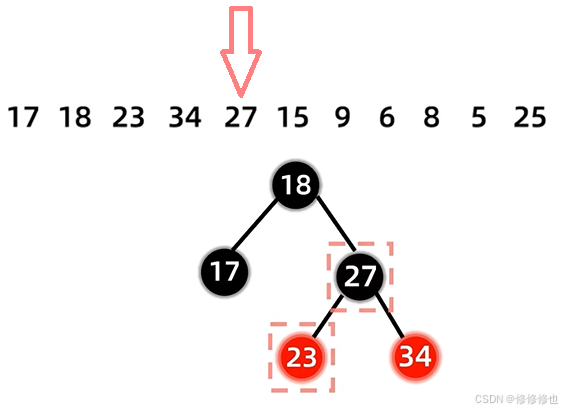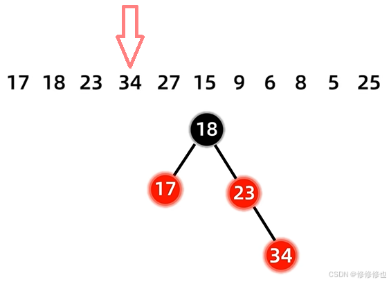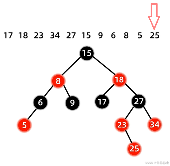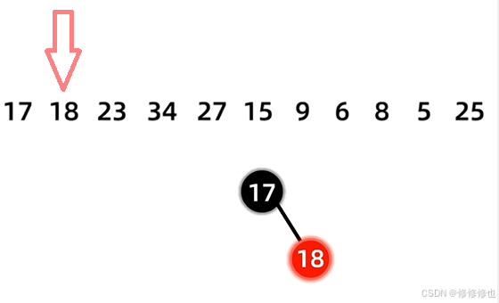 17 18 23 34 27 15 9 6 8 5 25 首先插入第一个结点17:
