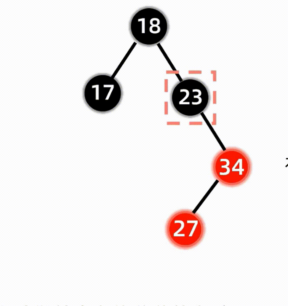 旋转好后,再对旋转后的根节点27和祖父结点23进行变色: