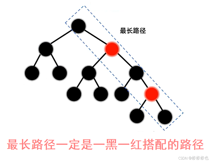 因此假设所有路径的黑节点数是n,那么最短路径的长度为n,而最长路径的长度为2n-1.