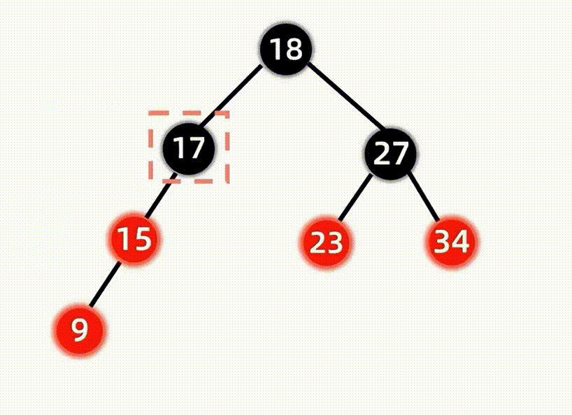 右旋完成后,我们更改旋转后的根节点15和爷爷结点17进行变色,就调整好了: