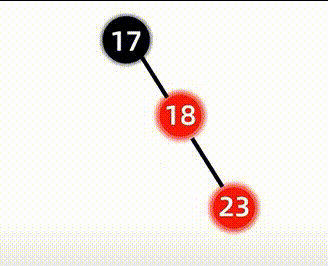 此时违反了红黑树不能有两个连续红结点的性质,并且对新插入的结点23来讲,它的叔叔结点不存在,因此我们考虑使用旋转来解决,观察发现此时是RR型的旋转,因此我们通过左旋来解决: