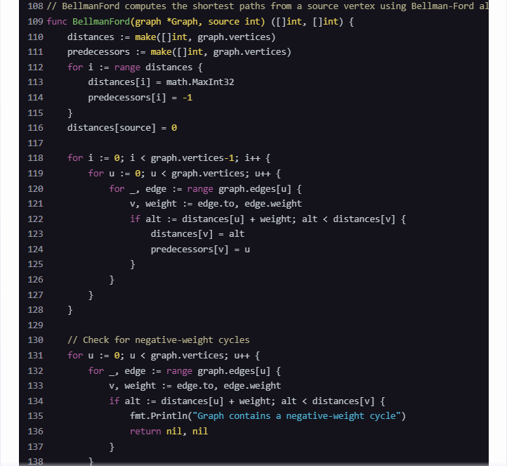 bfDistances, bfPredecessors :=BellmanFord(graph, source)