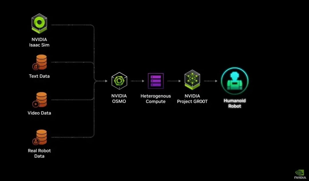老黄宣布一项名为GR00T的项目,旨在进一步推动英伟达在机器人和具身智能的突破性工作。由GR00T驱动的机器人可以理解自然语言,并通过观察人类动作来模拟运动。