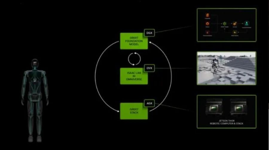 创建了一个名为 Isaac Reinforcement Learning Gym 的健身房,允许类人机器人学习如何适应物理世界。然后是一个令人难以置信的计算机,这个计算机将进入一个机器人或类人机器人,称为 Thor。它被设计为变换器引擎,将其中的几个组合成一个视频。