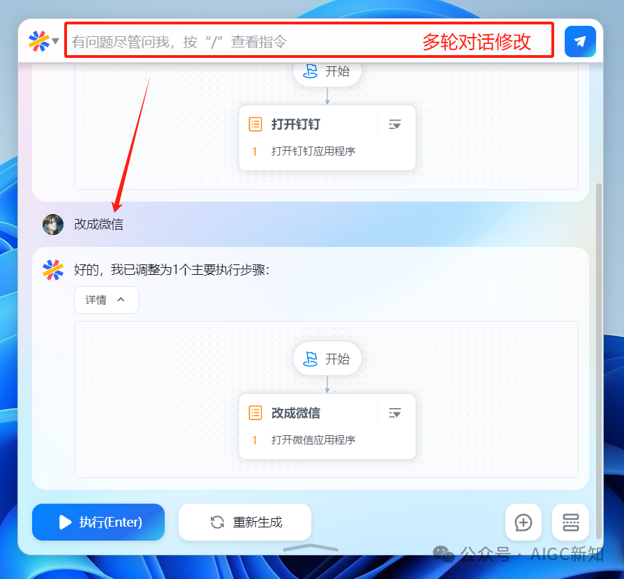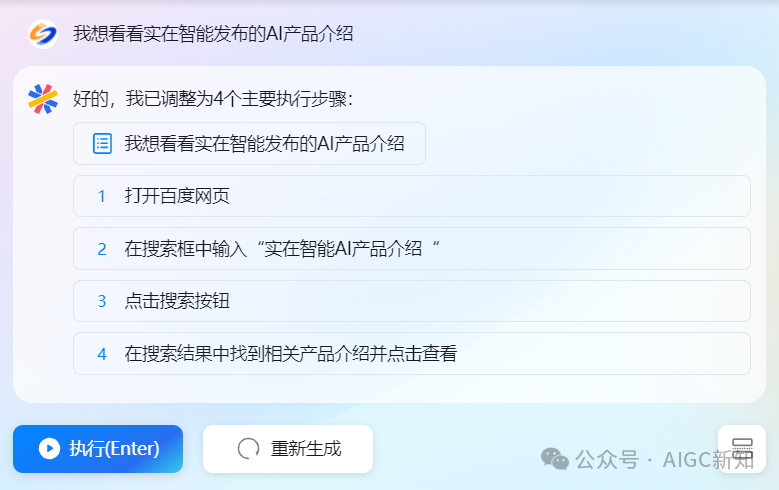 确认步骤无误后,手动点击“执行”或回车,即自动开始生成流程并执行。