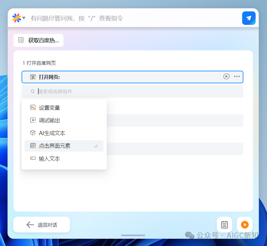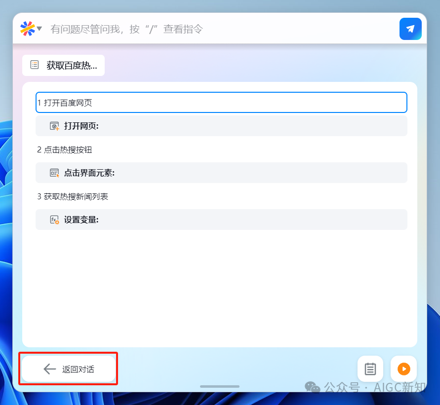 在编排计划模块,可以点击“返回对话”,回到对话模式