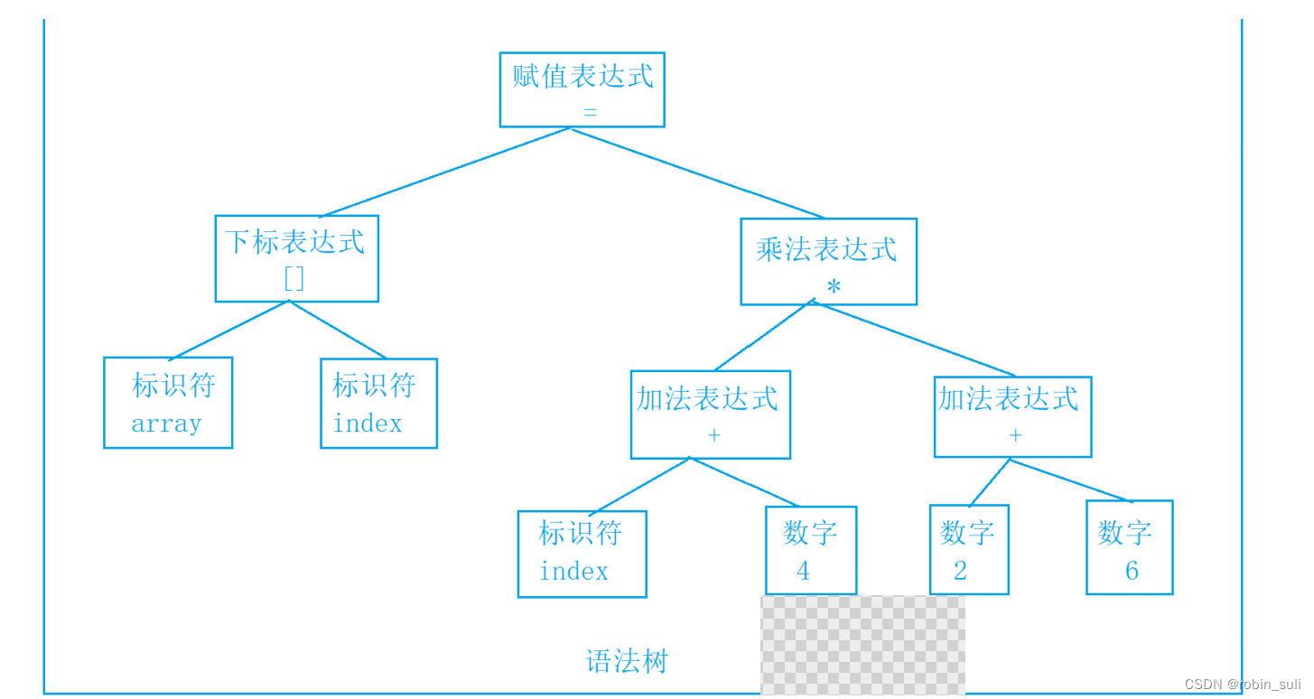 接下来语法分析器,将对扫描产⽣的记号进⾏语法分析,从⽽产⽣语法树。这些语法树是以表达式为节点的树。