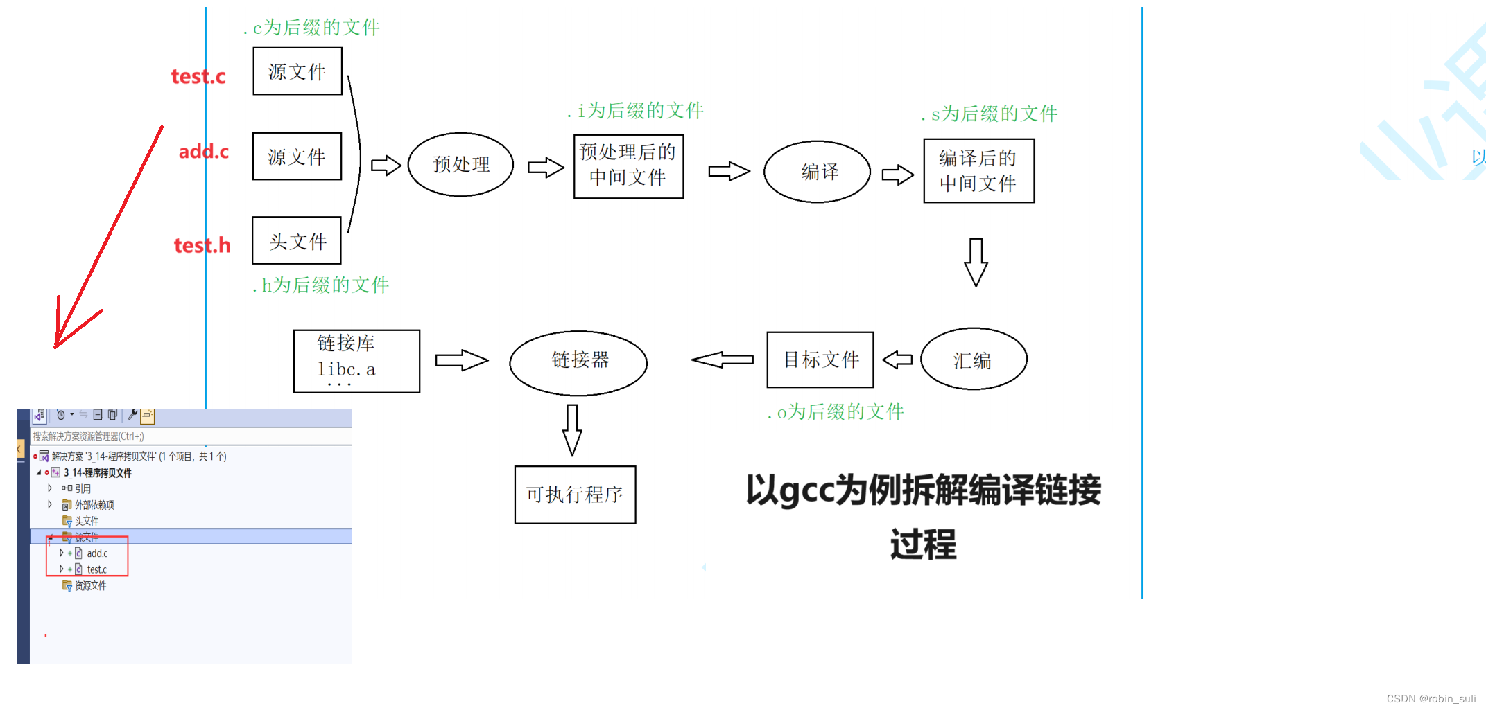 ⼀个C语⾔的项⽬中可能有多个 .c 文件⼀起构建,那多个 .c 文件如何⽣成可执行程序呢?