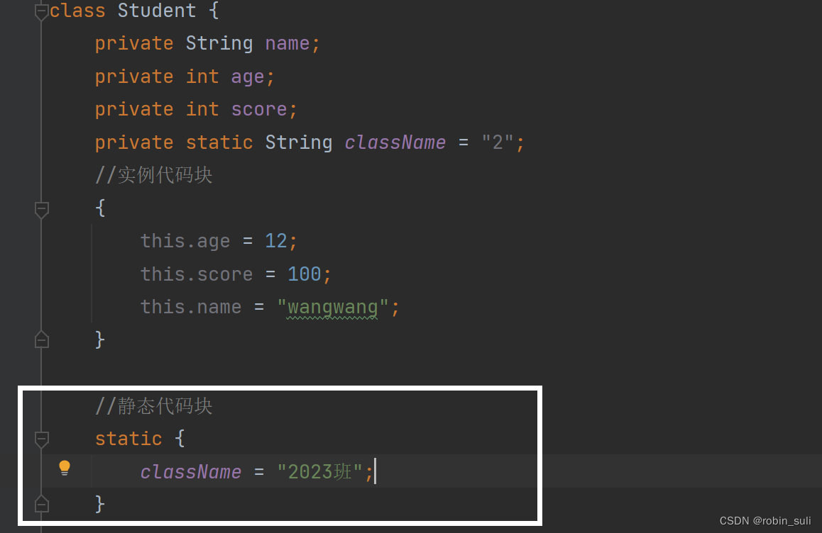 2. 静态代码块初始化 :下面来讲解一下代码块。