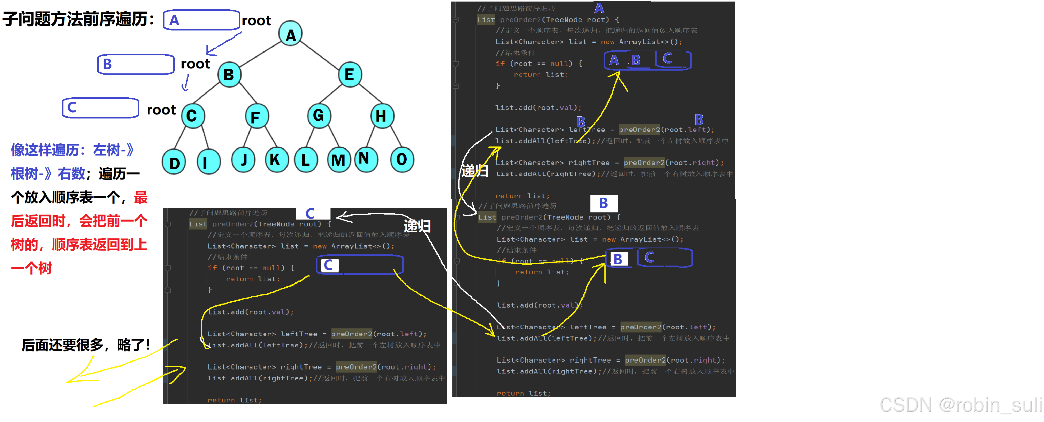 (1)前序遍历及前序子问题遍历: