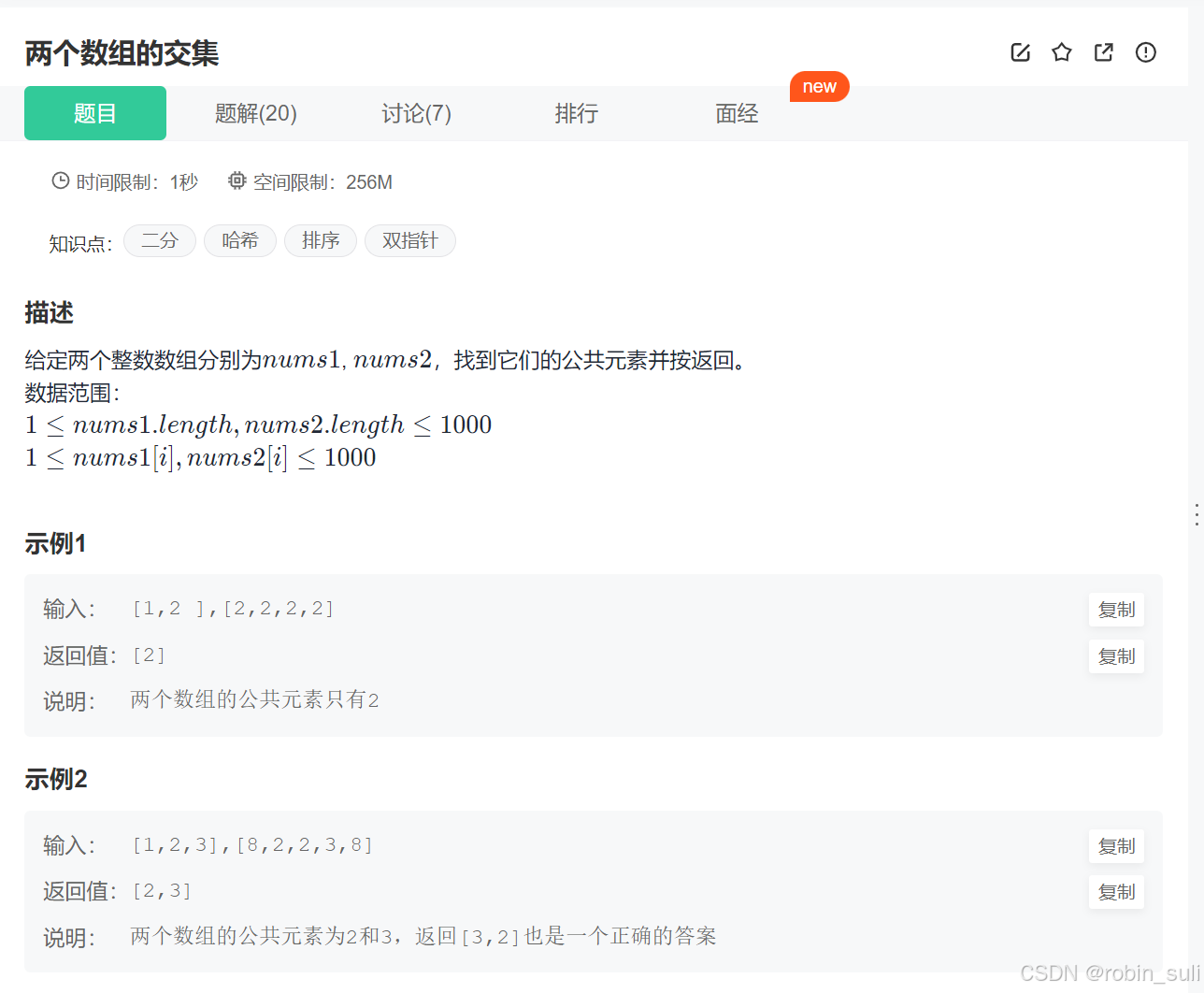 方法一:哈希,常人都可以想到直接用哈希看是否包含另一个数组即可:这里记得去重:
