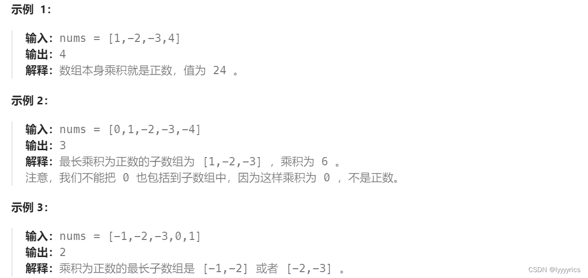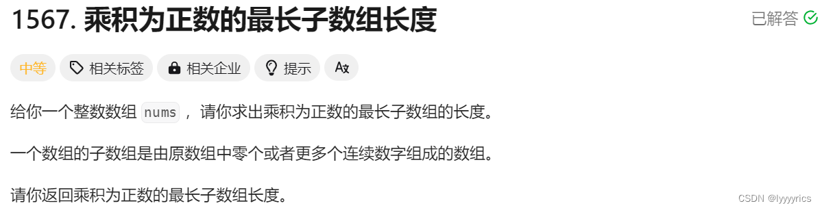 这道题要求的是乘积是正数的子数组总长度最长的那个子数组的长度。
