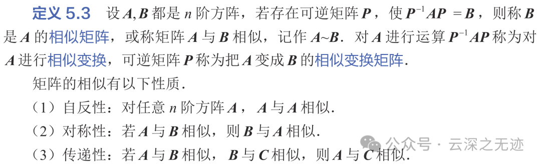 如果对于两个n阶方阵A和B,存在一个可逆矩阵P,使得: