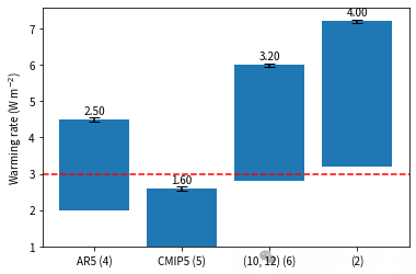 bars = ax.bar(categories, warming_rates, yerr=error_bars, bottom=bottom_values, capsize=5)