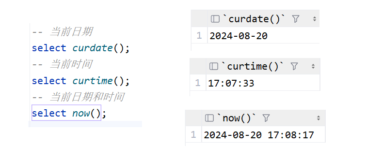 函数是指一段可以直接被另一段程序调用的程序或代码,在MySQL中也内置了许多函数供开发者去调用,例如之前提到的聚合函数,本节再去介绍一些其他常用的函数