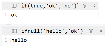 IFNULL(value1,value2) | 如果value1不为空,返回value1,否则返回value2 |