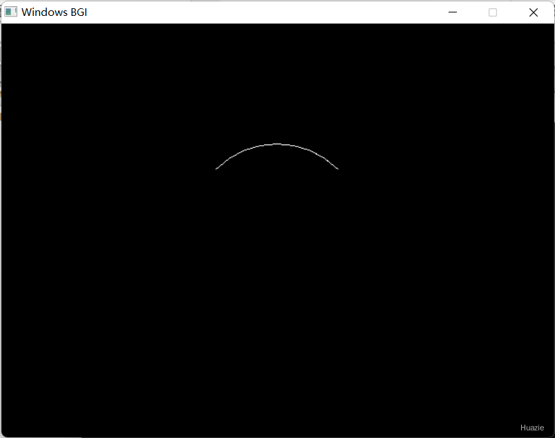 上述代码是一个简单的图形程序,使用了图形库函数 arc 来绘制一个弧线并显示其起始和结束点的坐标。