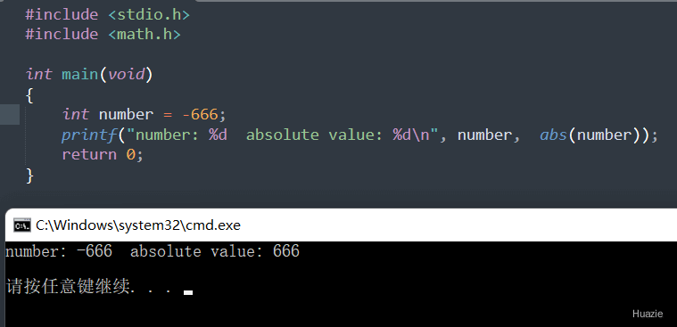 printf("number: %d  absolute value: %d\n", number, 	abs(number));