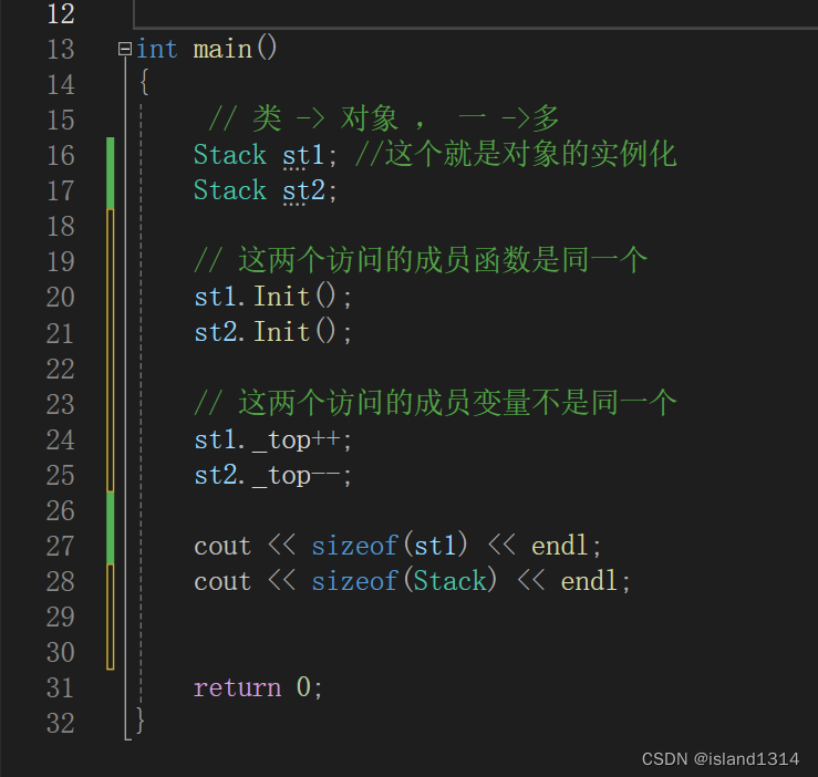可以发现 这st1 st2 访问的成员函数是同一个 因此我们可以得出一个结论 Stack 实例化的对象 调用成员函数的地址都一样。对象占用的大小 只考虑成员变量 也不考虑其私有还是公有