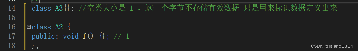 注意 : 空类大小是 1 这一个字节不存储有效数据 只是用来标识对象被定义出来