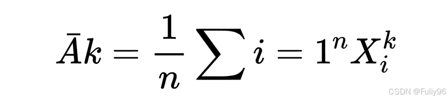 其中,𝐸[(𝑋−𝐸(𝑋))𝑘]E[(X−E(X))k]表示随机变量X减去其均值𝐸(𝑋)E(X)后的k次幂的数学期望。 在实际应用中,可以通过样本数据来估计这些矩。例如,样本的k阶原点矩可以通过以下公式计算: