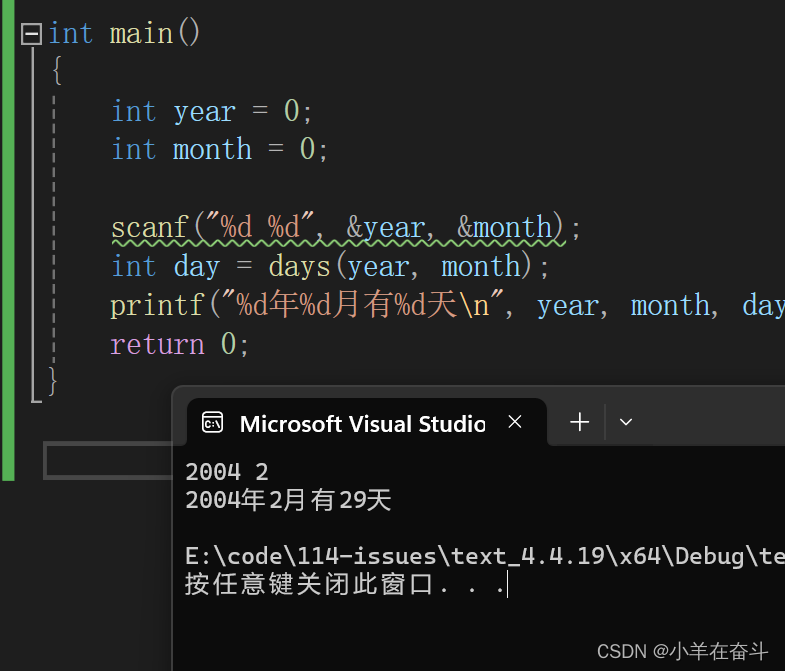 if (1 == ret && month == 2)//如果是闰年并且是2月,则天数+1
