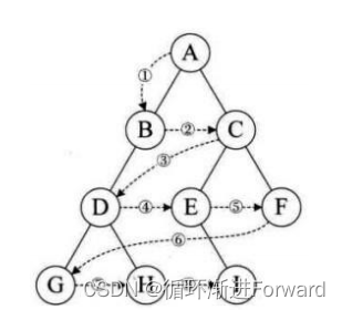层序遍历:除了先序遍历、中序遍历、后序遍历外,还可以对二叉树进行层序遍历。设二叉树的根节点所在层数为1,层序遍历就是从所在二叉树的根节点出发,首先访问第一层的树根节点,然后从左到右访问第2层上的节点,接着是第三层的节点,以此类推,自上而下,自左至右逐层访问树的结点的过程就是层序遍历。