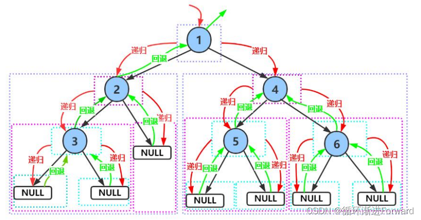 按照规则,二叉树的遍历有:前序/中序/后序的递归结构遍历: