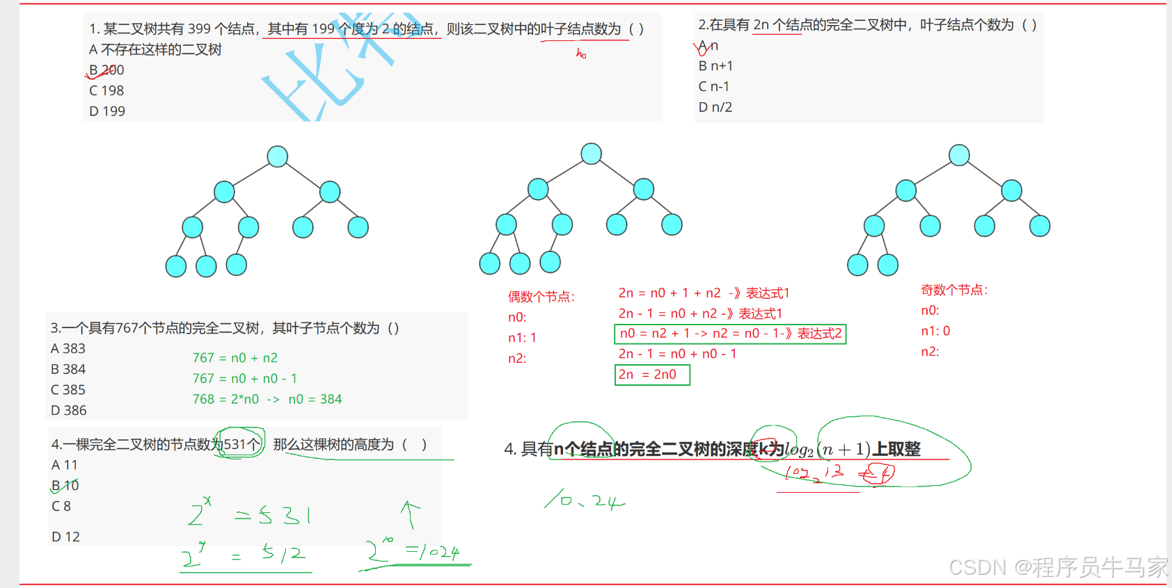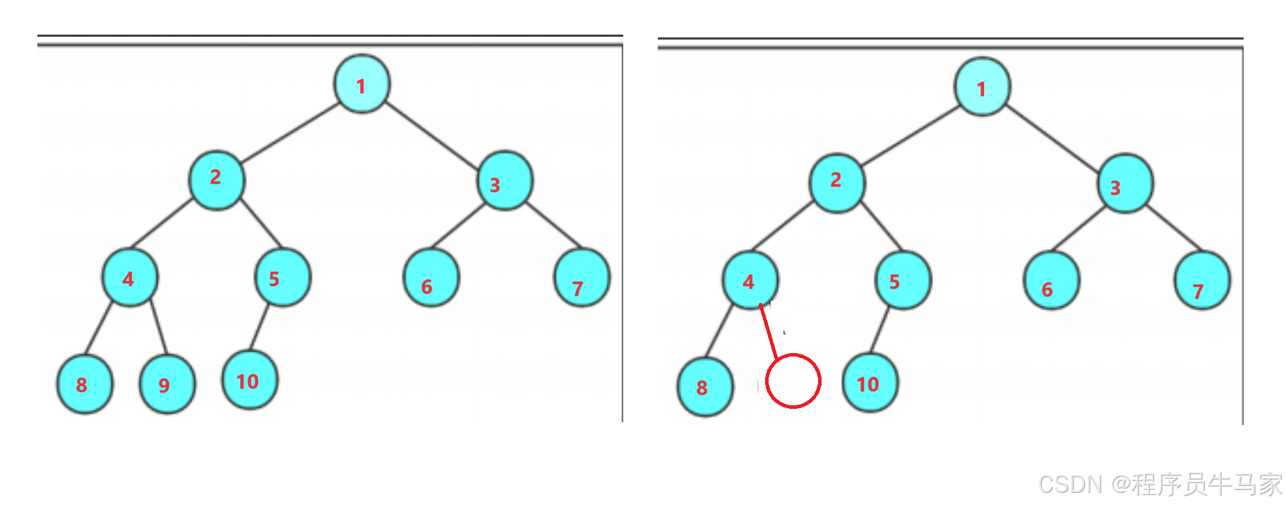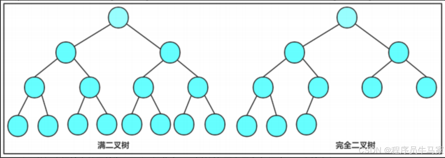 1**. 满二叉树:** 一棵二叉树,如果每层的结点数都达到最大值,则这棵二叉树就是满二叉树。也就是说,如果一棵 二叉树的层数为K,且结点总数是2^K-1,则它就是满二叉树。 2. 完全二叉树: 完全二叉树是效率很高的数据结构,完全二叉树是由满二叉树而引出来的。对于深度为K的,有n 个结点的二叉树,当且仅当其每一个结点都与深度为K的满二叉树中编号从0至n-1的结点一一对应时称之为完全二叉树。 要注意的是满二叉树是一种特殊的完全二叉树。