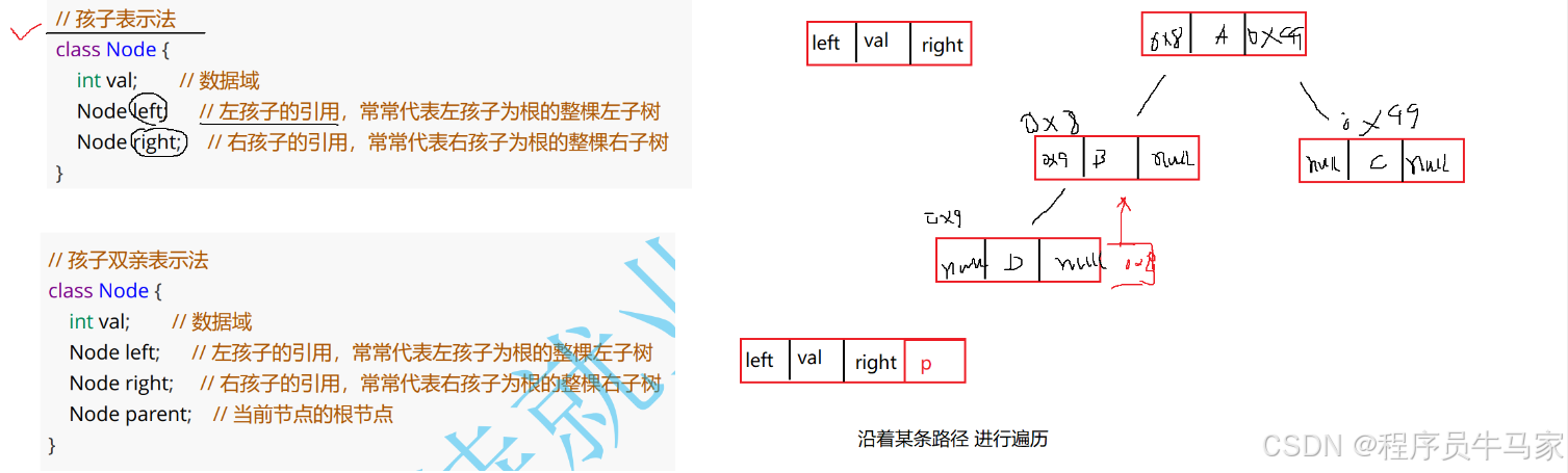 二叉树的存储结构分为:顺序存储和类似于链表的链式存储。 顺序存储在下篇博客讲解 二叉树的链式存储是通过一个一个的节点引用起来的,常见的表示方式有二叉和三叉表示方式,具体如下: